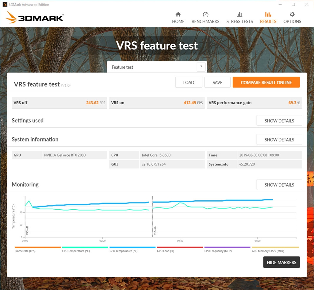 VSR Feature test i5-8600 + 2080ADV PL100% +150 +1000 25℃ 2160p 69.3%