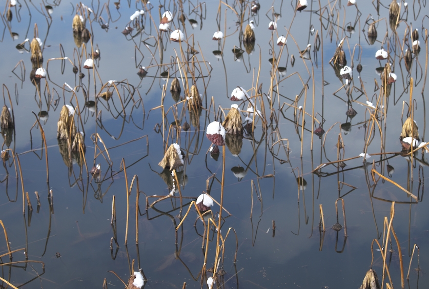 枯れはすに雪