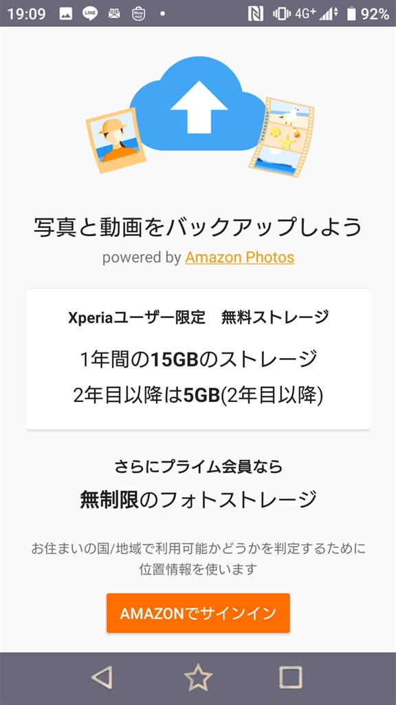 Amazon Photosのバックアップが案内されます。ご利用は任意です。
