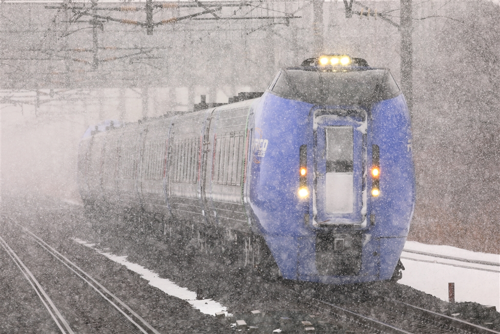 吹雪の為、ヘッドライト全灯で疾走キハ283 すーぱーおおぞら