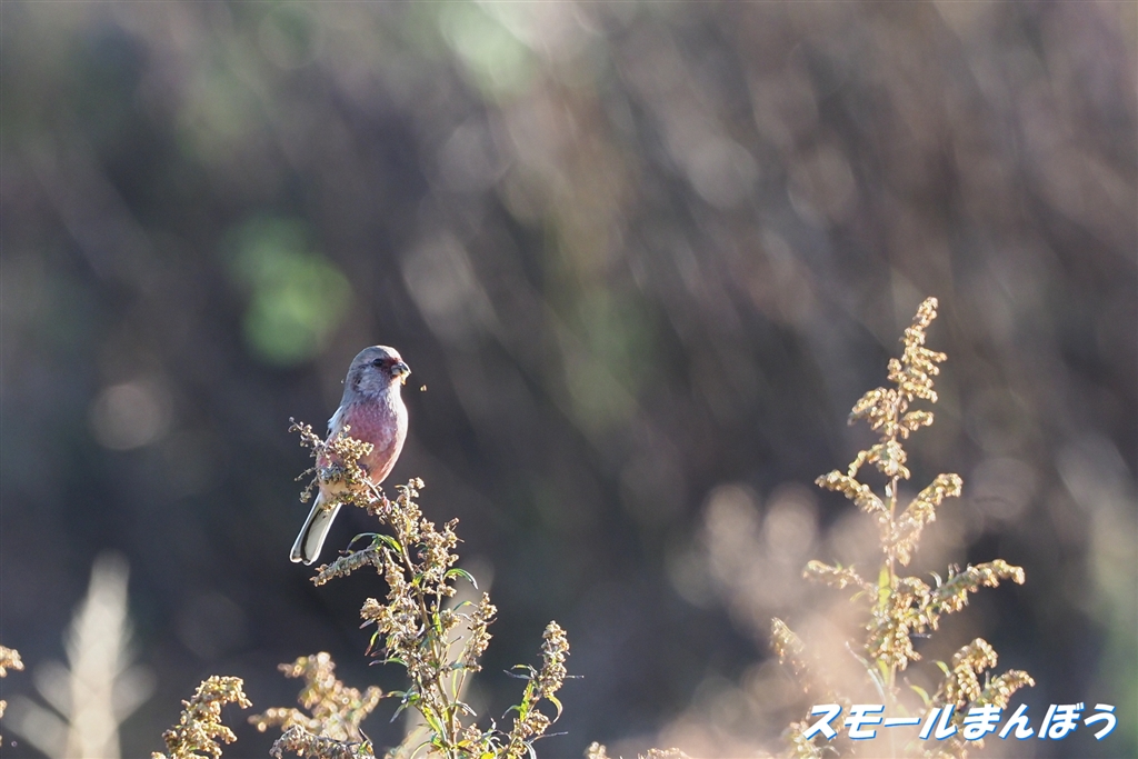 ヨモギの上に現れたベニマシコのオス
