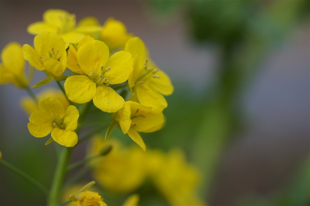 放置されたプランターに咲く菜の花。