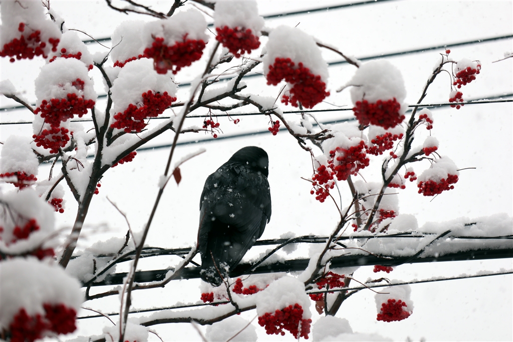 冬の初めのベタベタ雪の時ならではの景色です。