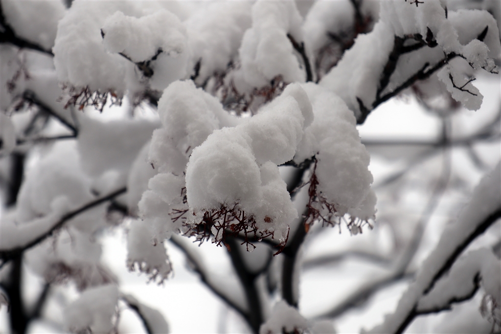 街路樹のナナカマドに、ふんわり雪が積もってきれいでした。