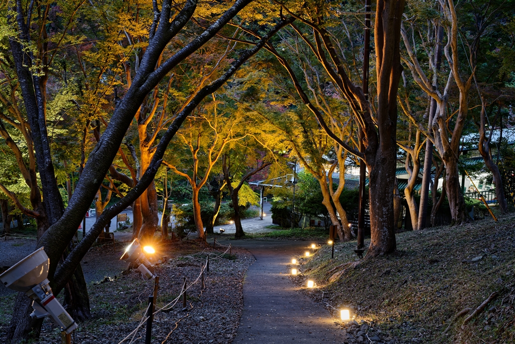 「八瀬もみじの小径」ライトアップ。まだ見ごろには早かったです。