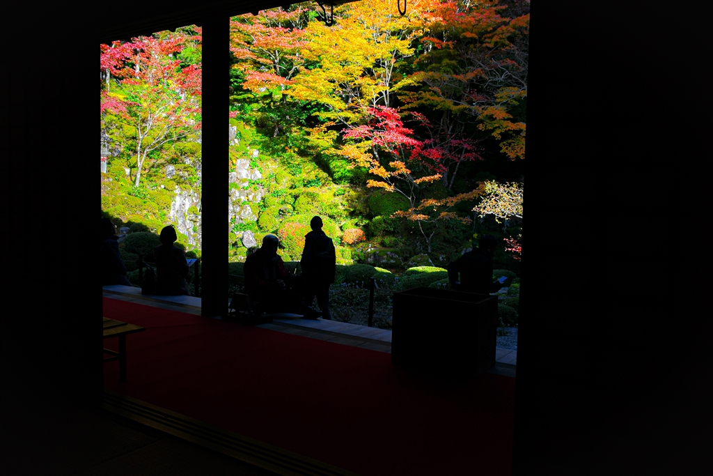 Aスピーカーから素敵な紅葉を見ながら金剛輪寺の解説を聞いておられます。