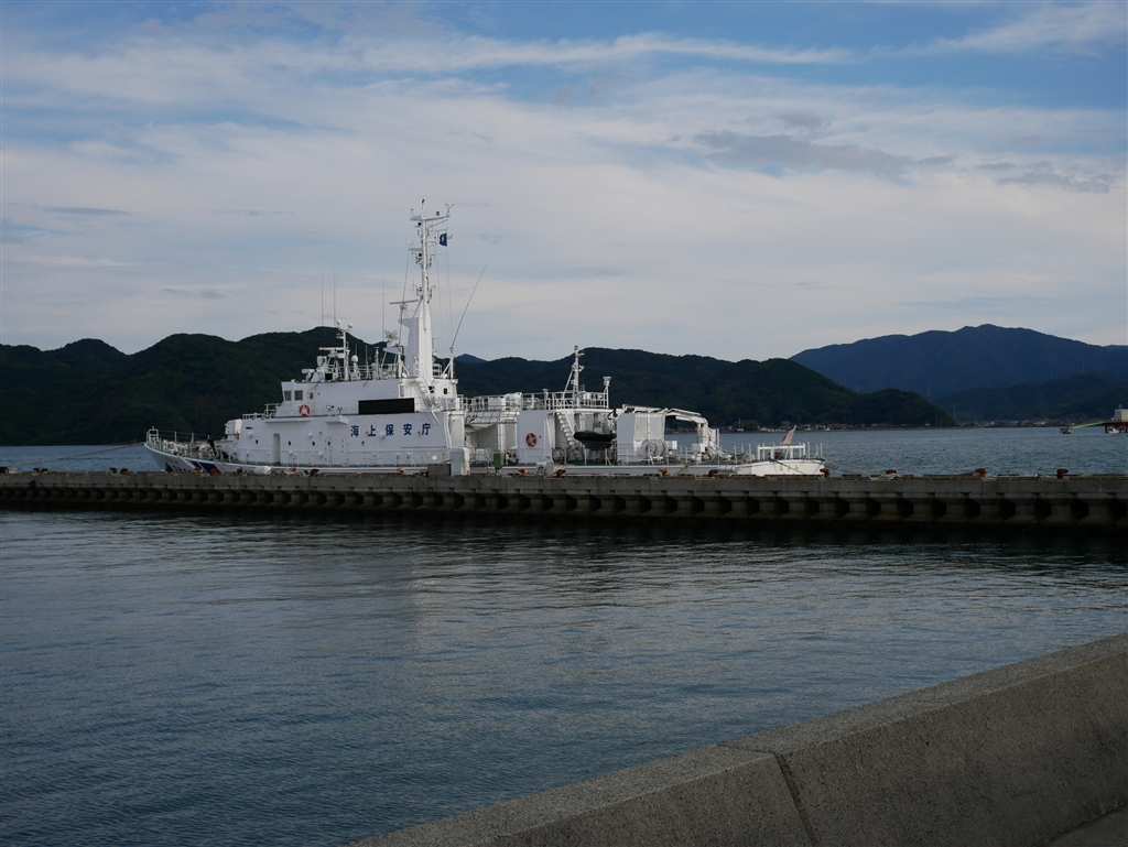巡視船「おおみ」、背景は「青海島」