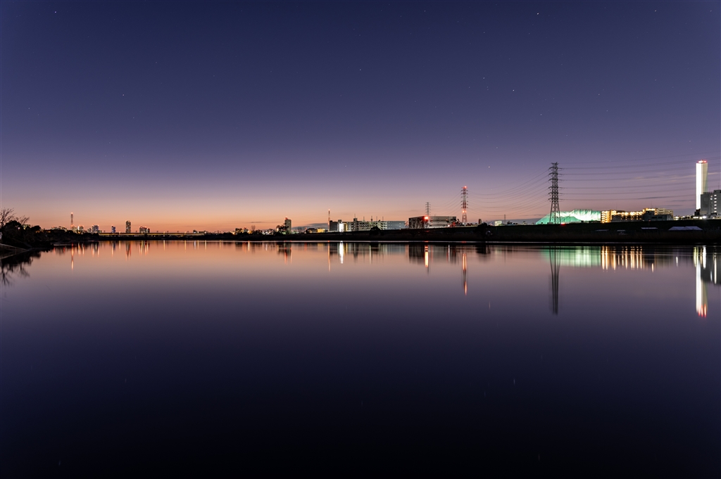 朝 荒川の夜明け