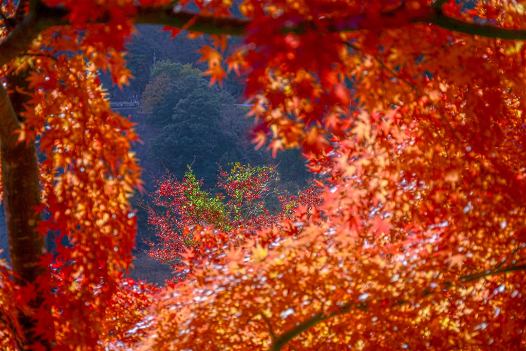 C紅葉の隙間からダム方面を撮りました。