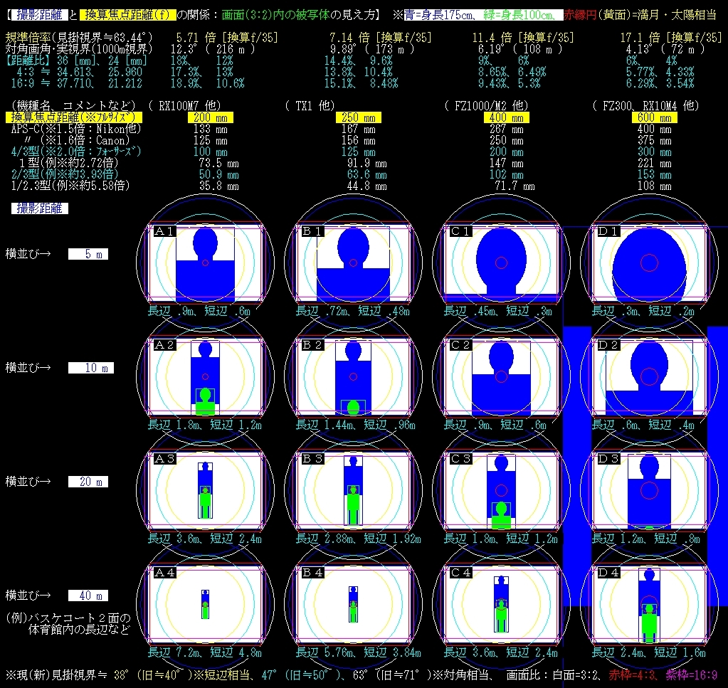 距離5m~40m、換算f=200mm~600mm