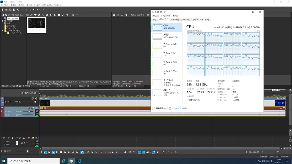 『設定変更前 プレビュー再生時のCPU使用率』MAGIX skmden3さんのクチコミ掲示板画像2/3