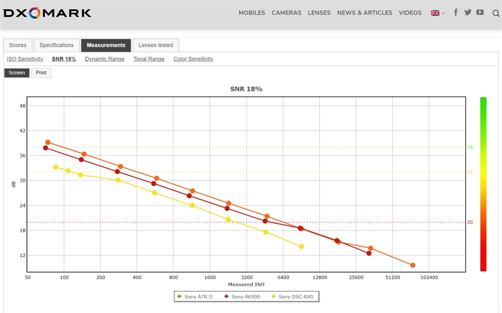DxOMark測定例: [Screen] α7Rii、α6500、RX0