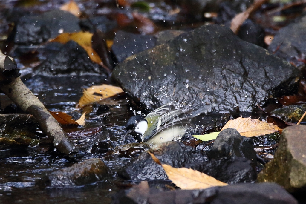シジュウカラの水浴び