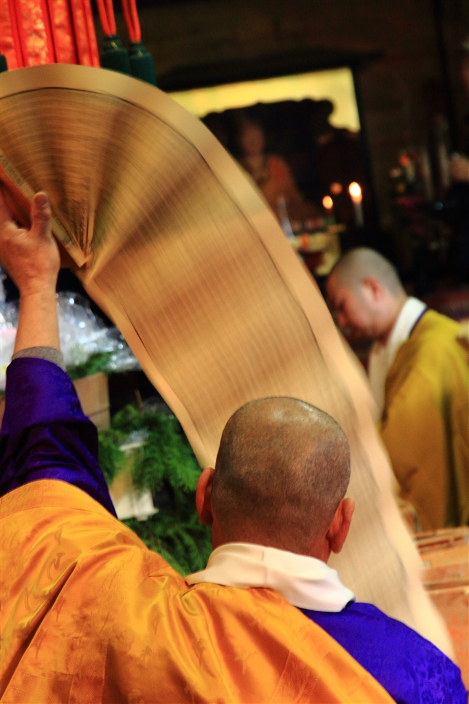 流し読みする経典(経文)の流し撮り