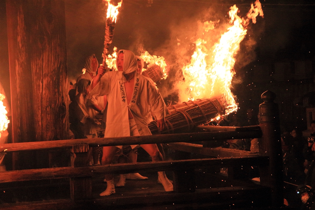 松明が回廊をぐるりと回る