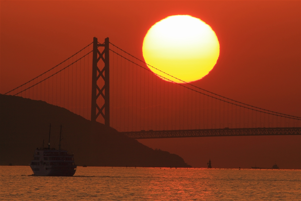 左のクルーズ船は神戸港沖を遊覧している
