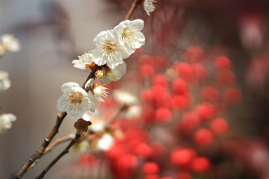 バックの赤い丸はナンテンです。写真には難点がありますが^^;