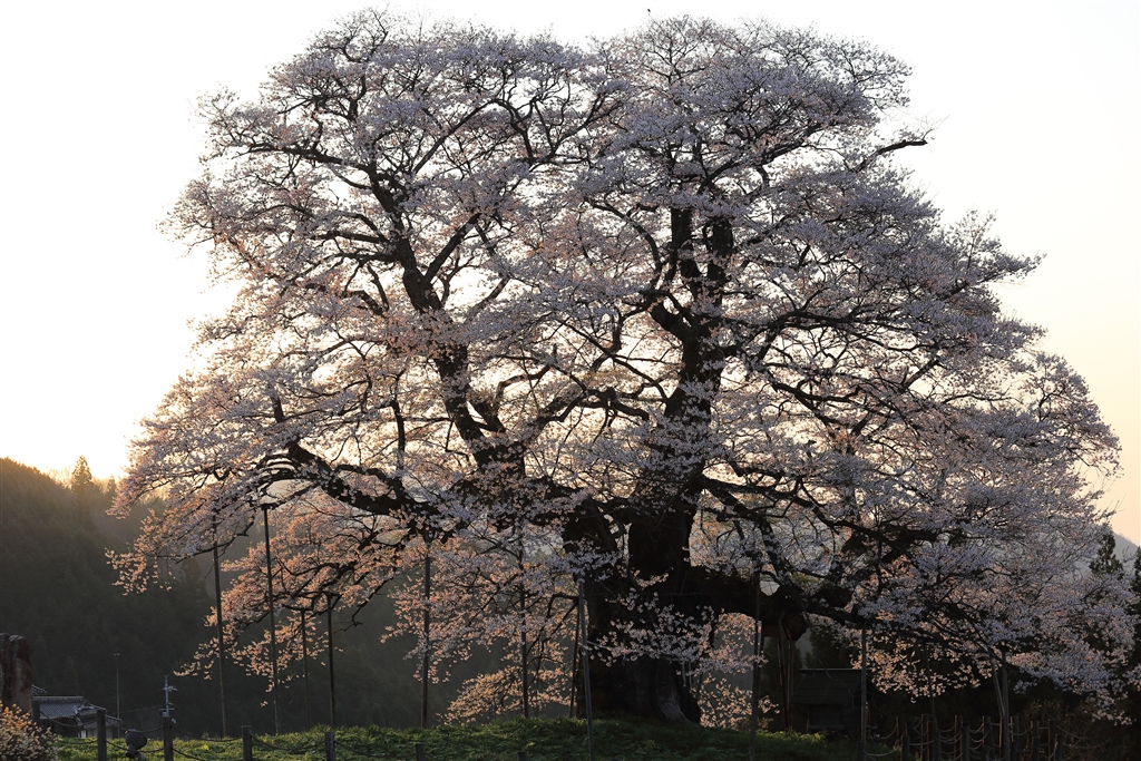 朝日を浴びた醍醐桜は、とても印象的でした