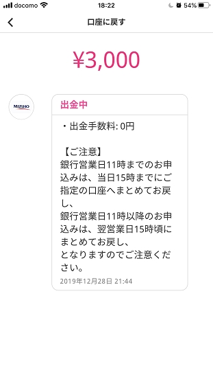 みずほATMで現金3千円を入金しチャージ