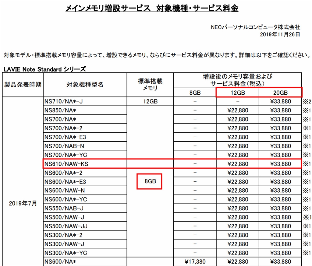 一応、メインメモリ増設サービスにも対応しています。