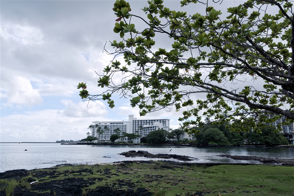 ココナッツアイランド(モク・オラ島)からヒロ・ハワイアン・ホテル方向を望む