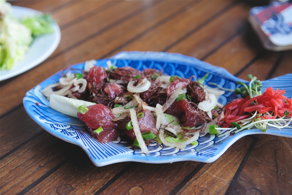 ポキというハワイの伝統料理。マグロの切り身なので日本人の舌にも合います