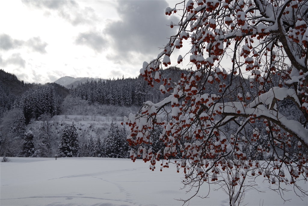 柿の向こうになにやらキツネの足跡?