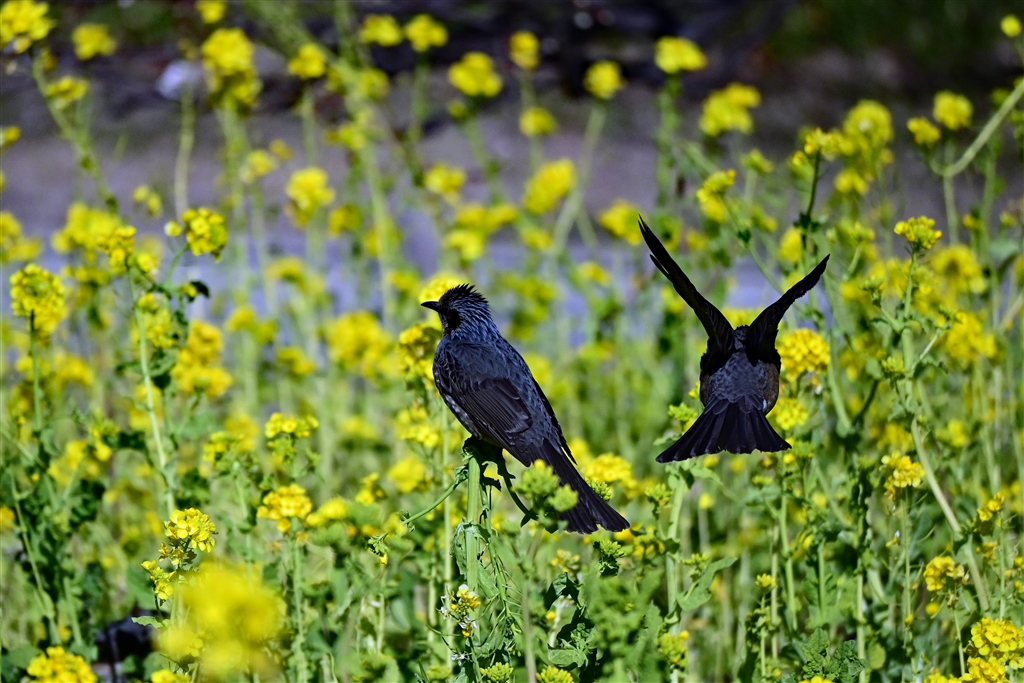 鳥たちが花を食べてました