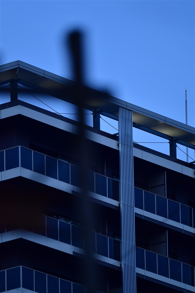 高層マンションと物干し場の柱