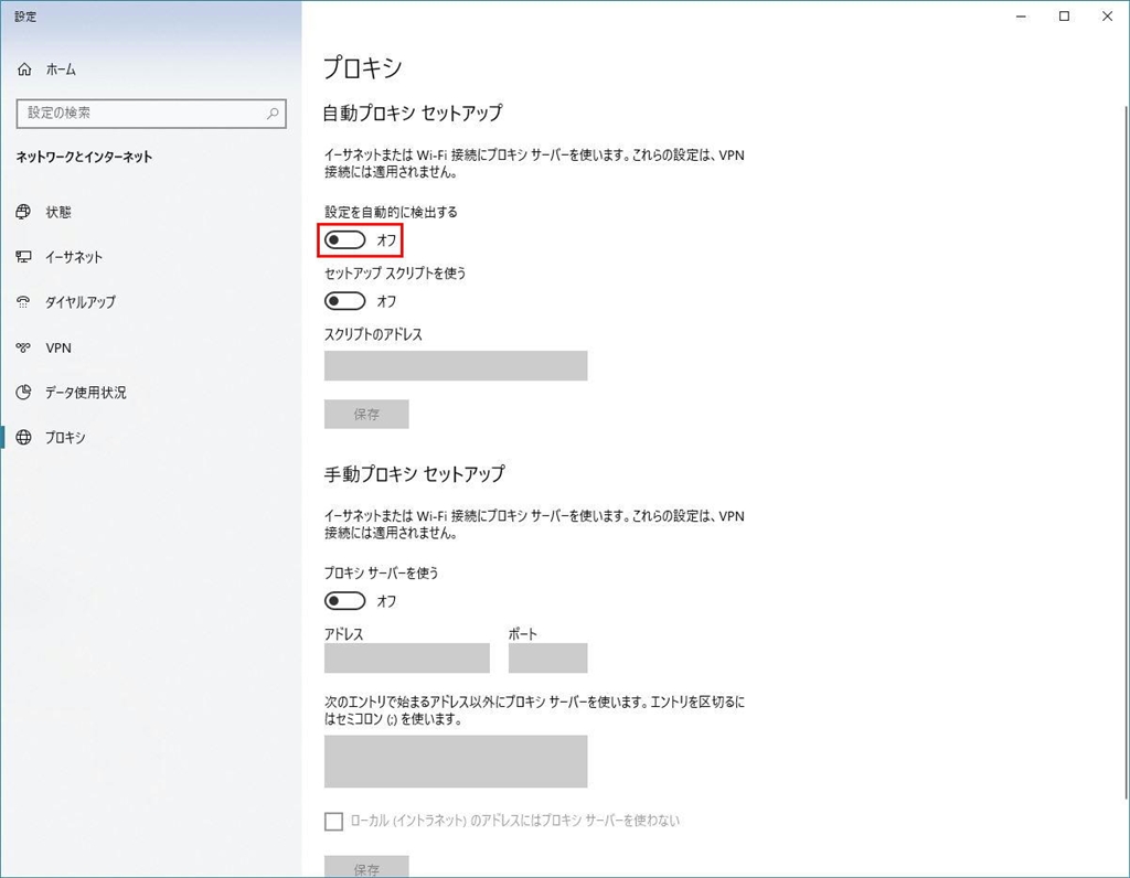 プロキシ → オフ