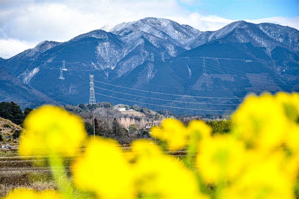 @は、菜の花と綿向山の間にブルーメの丘を入れています。