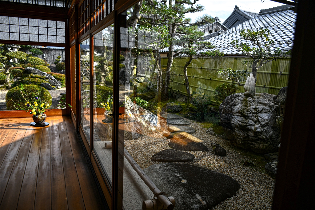 斜め横から透かして見ると厚さが均等でないので風景が歪んで見えます。