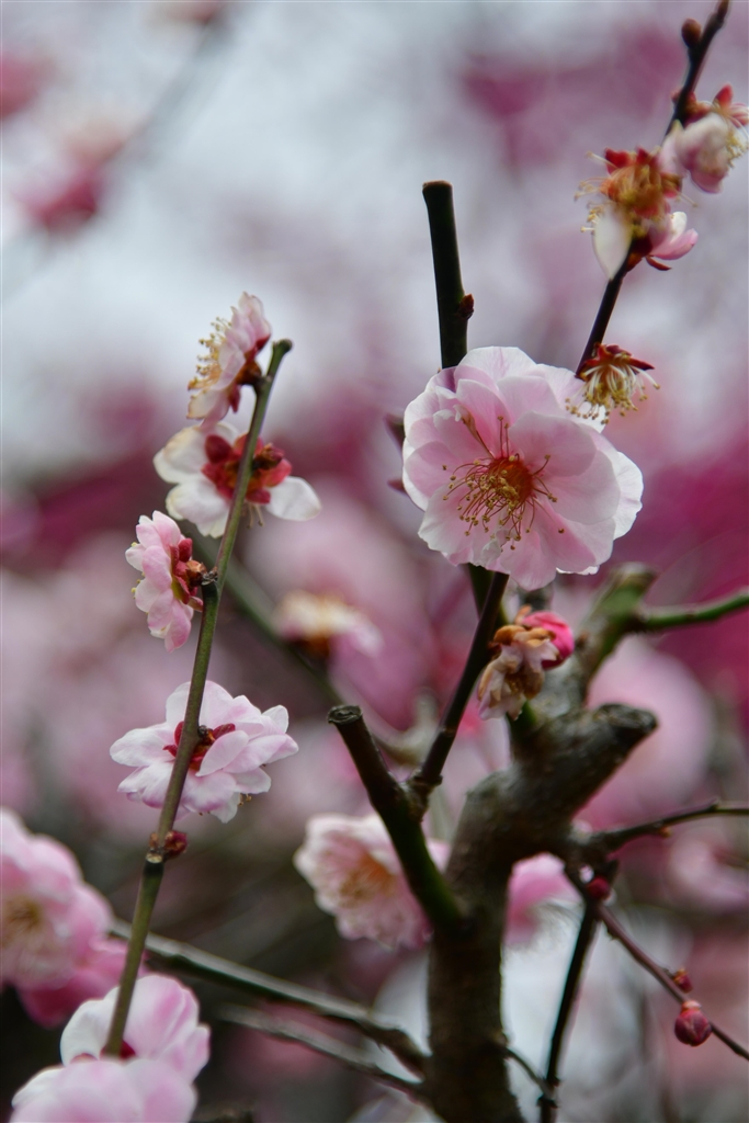 寒緋桜をバックに 梅花 です。