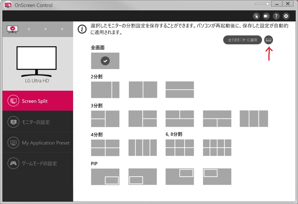 LGのディスプレイ制御アプリの画面です