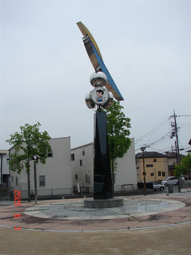 駅前に日時計モニュメントが