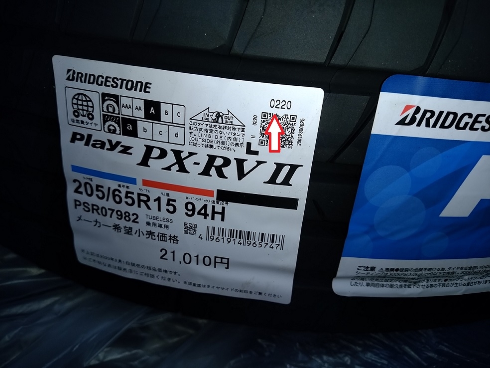 ブリヂストンタイヤラベルのQRコード上に製造ロット印字がある