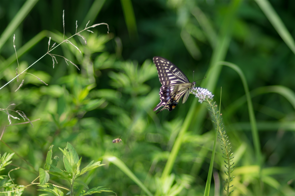 アゲハの後ろに小さなブンブン
