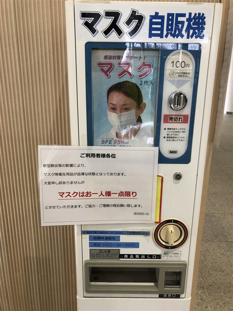 マスクの自販機、大学病院の入り口で