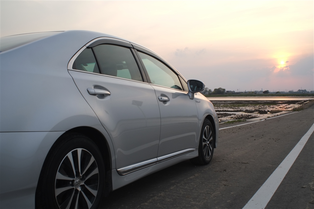 夕焼けと洗車後の車 でもちょっと汚れています