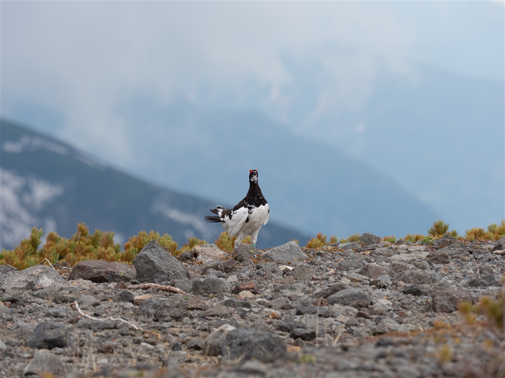 乗鞍にて。縄張り争いに勝ったドヤ顔のライチョウ