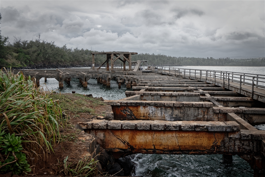 商業港跡地、アフキニ・ランディング。コンクリートの骨組みのみが残ります