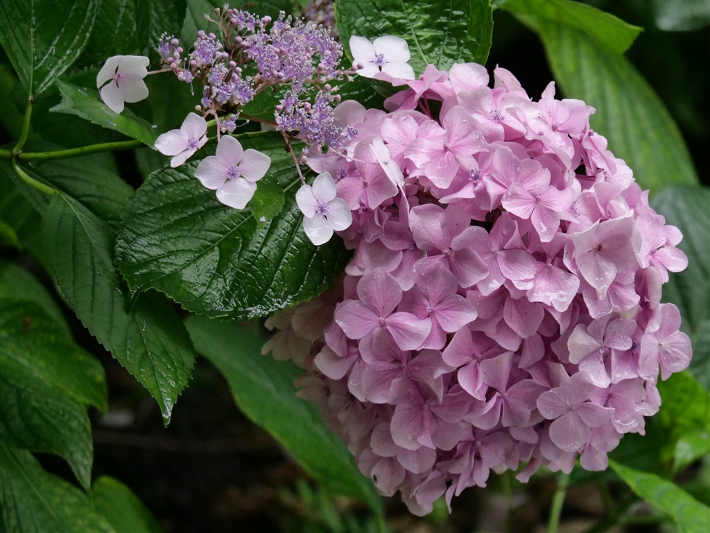 同じ株からアジサイとガクアジサイが(?_?)