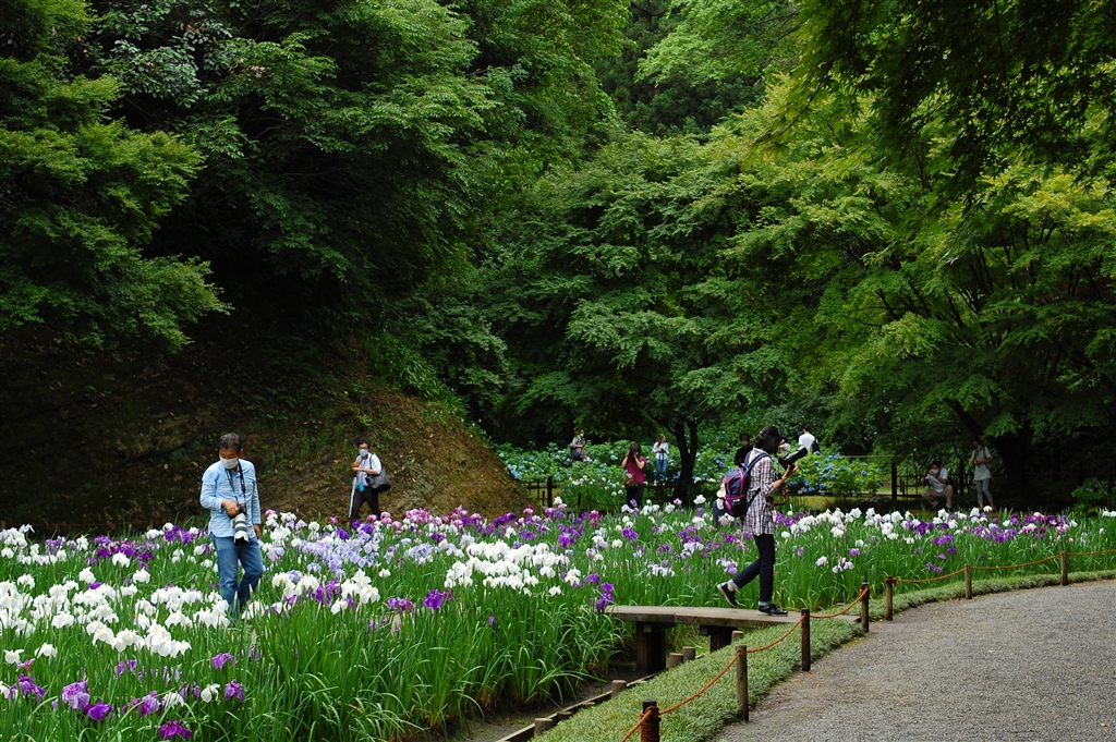 丸窓の向こう側。本堂後庭園の菖蒲も見頃でした^^