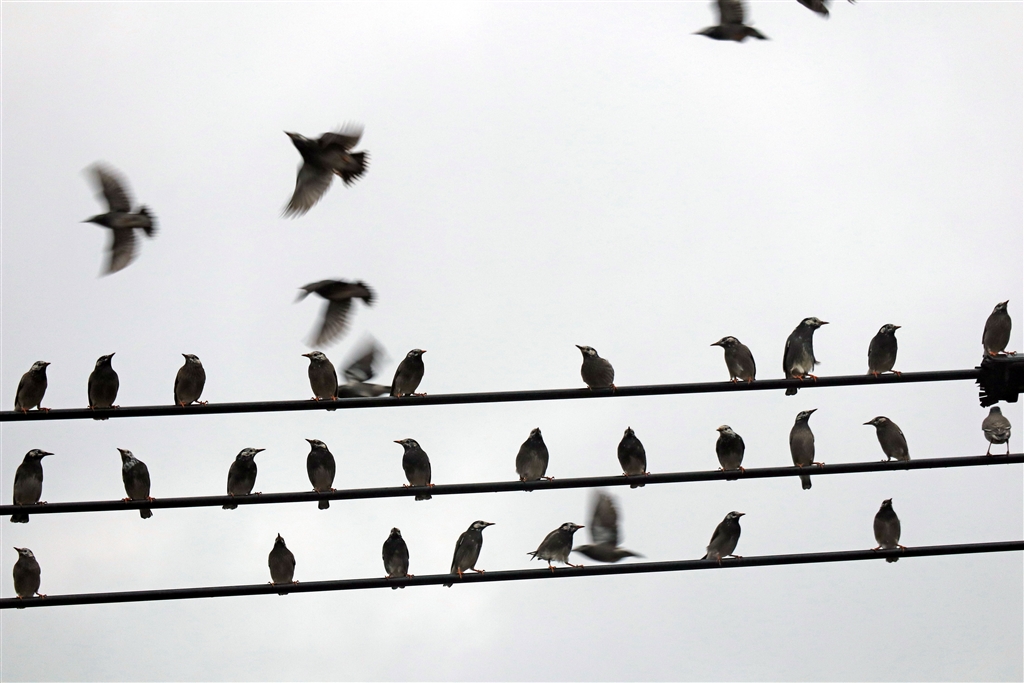 今年も、街路樹のナナカマドの実をついばみに、ムクドリの一群が来ましたが・・