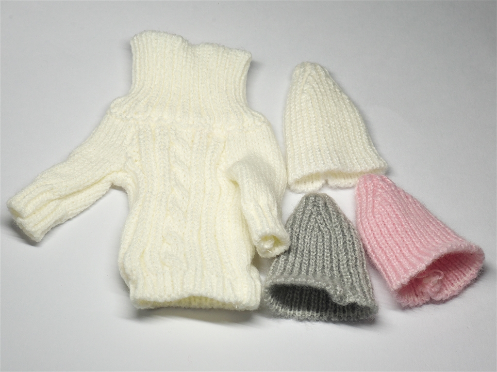 1)毛糸のセーターと帽子