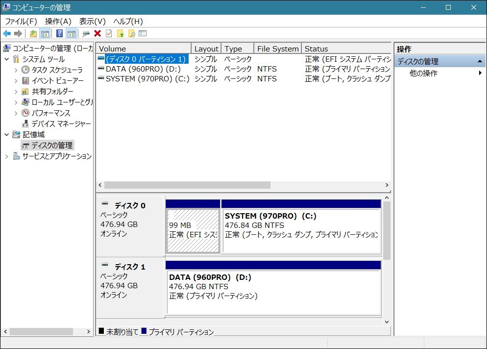『ディスクの管理』 SSDすべて 夏のひかりさんのクチコミ掲示板画像1/1