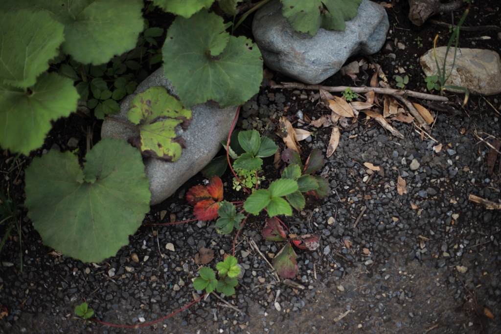 枠をはみ出て育つイチゴ