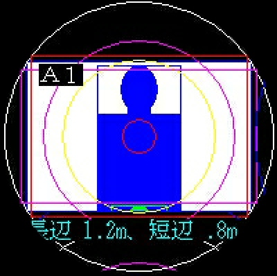 白の円がイメージサークル、白面=3:2、赤枠=4:3、ピンク枠=16:9