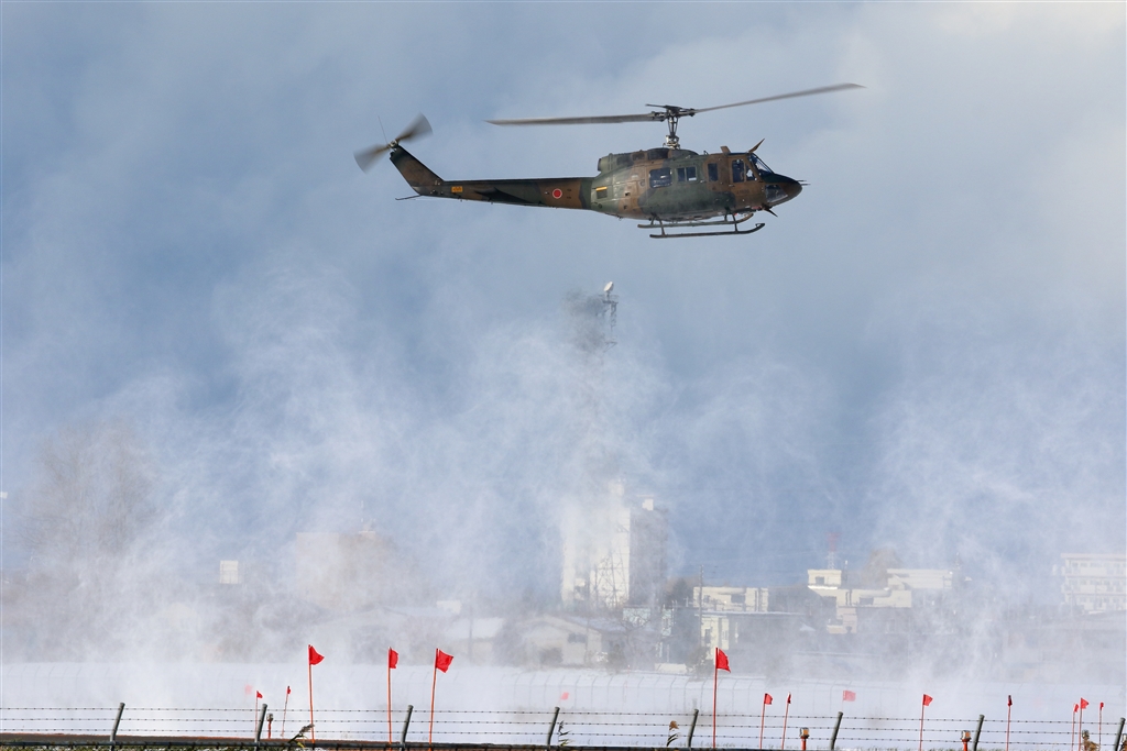 雪煙を上げて訓練中