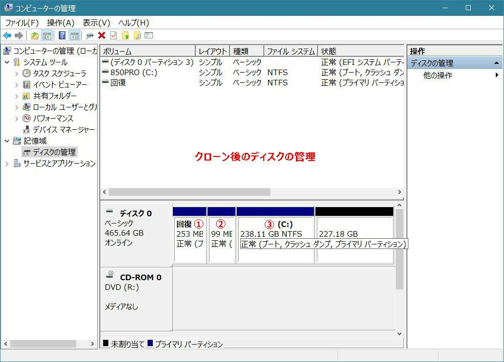 クローン後のディスクの管理